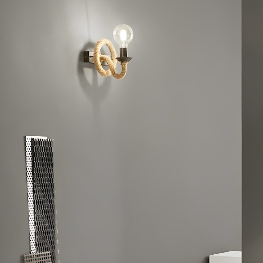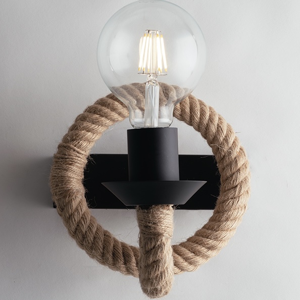 Collezione in metallo nero opaco con cavi rivestiti in corda di canapa naturale che si contraddistingue per il suo stile industrial e la versatilità nell’arredare.