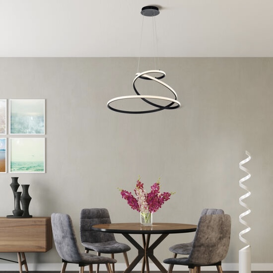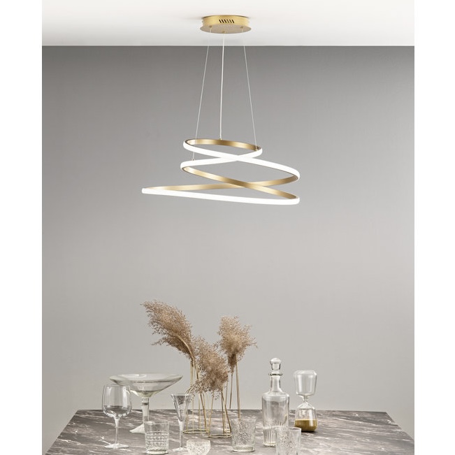 Collezione con struttura in alluminio ed elementi circolari a più livelli con diffusore in silicone. Disponibile nelle versioni bianco, oro e nero goffrato.