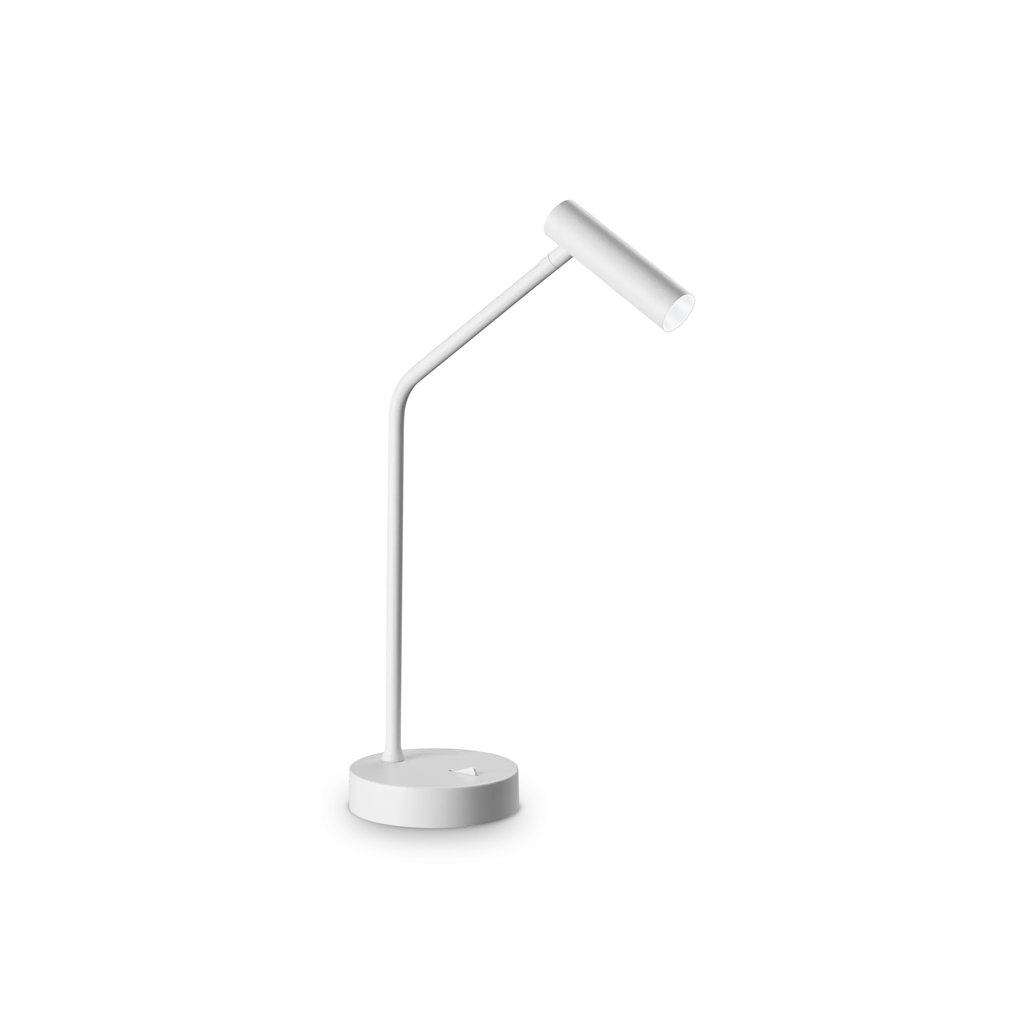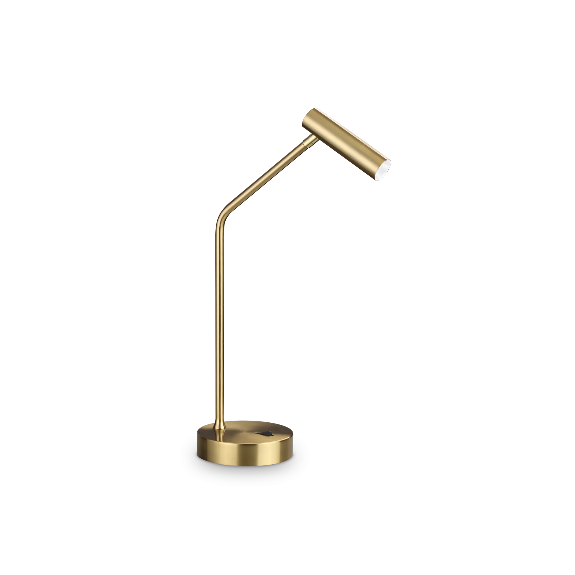Montatura in metallo verniciato opaco o placcato. Diffusore orientabile con ottica in acrilico satinato. Cavo in pvc con interruttore e driver integrato sulla spina. Finiture: bianco, nero, ottone spazzolato.